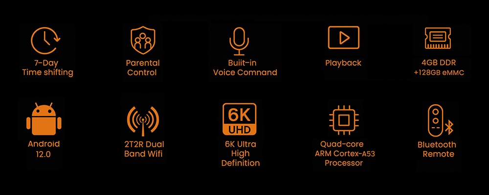 The SuperBox S7 Prime brings next-generation streaming right to your living room, combining the power of Android 12, a massive 128GB storage, blazing-fast Wi-Fi 6, and eye-popping 6K Ultra HD visuals, all in a sleek package. Whether you’re a movie enthusiast, a family looking for flexible viewing options, or a gamer seeking immersive experiences, the SuperBox S7 Prime packs everything you need into one smart streaming device.